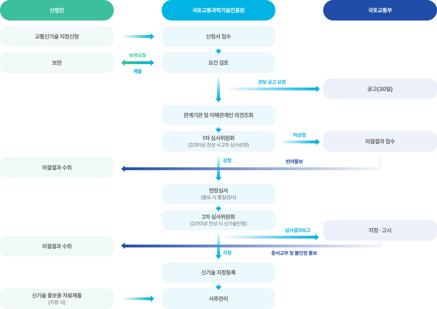 - 제출방법 : 이해관계의견서[규정 별지 제1호서식](상세 설명자료 포함)에 맞게 작성하여 관보공고일부터 30일 내에 '국토교통과학기술진흥원'에 공문으로 제출